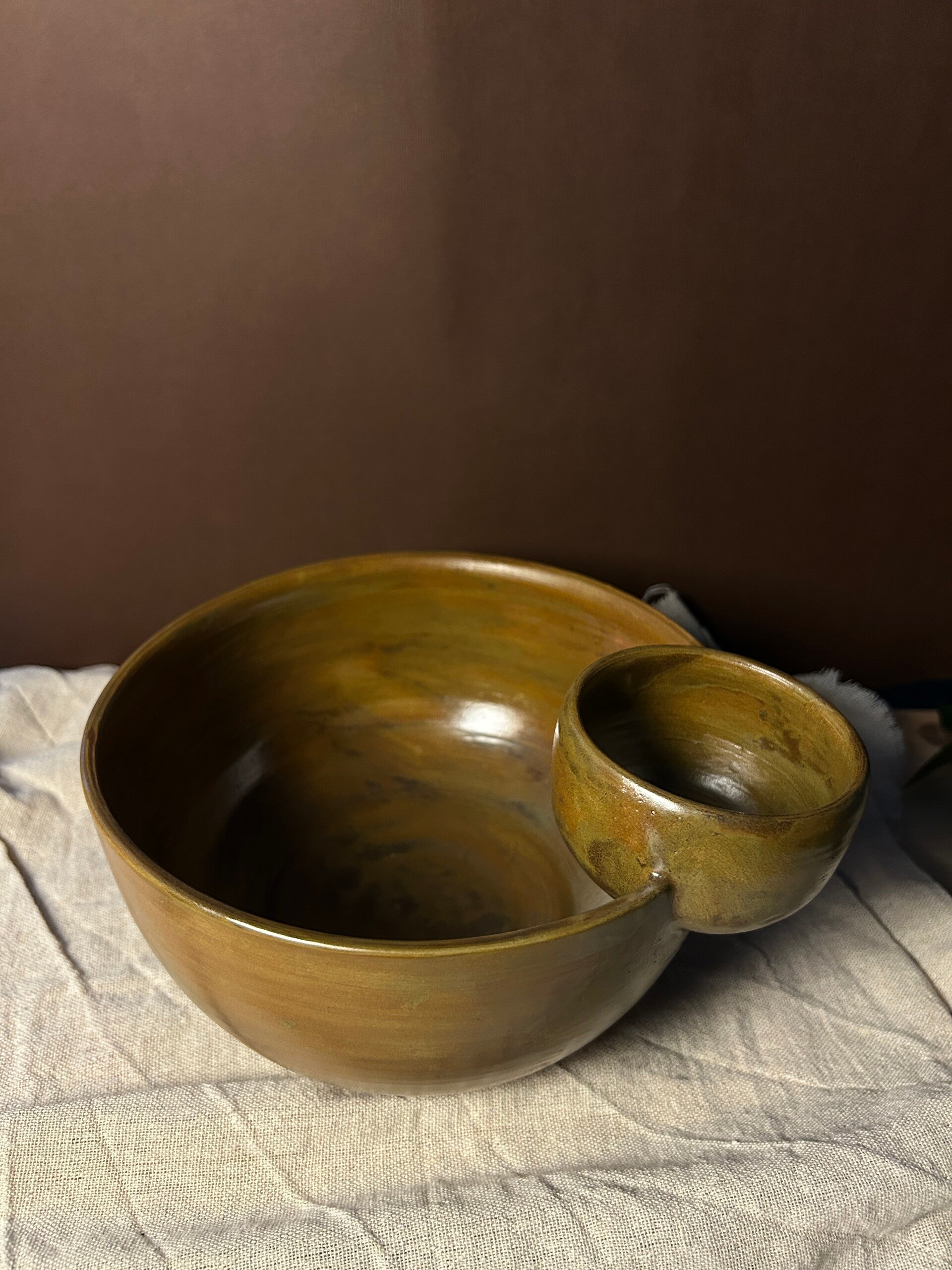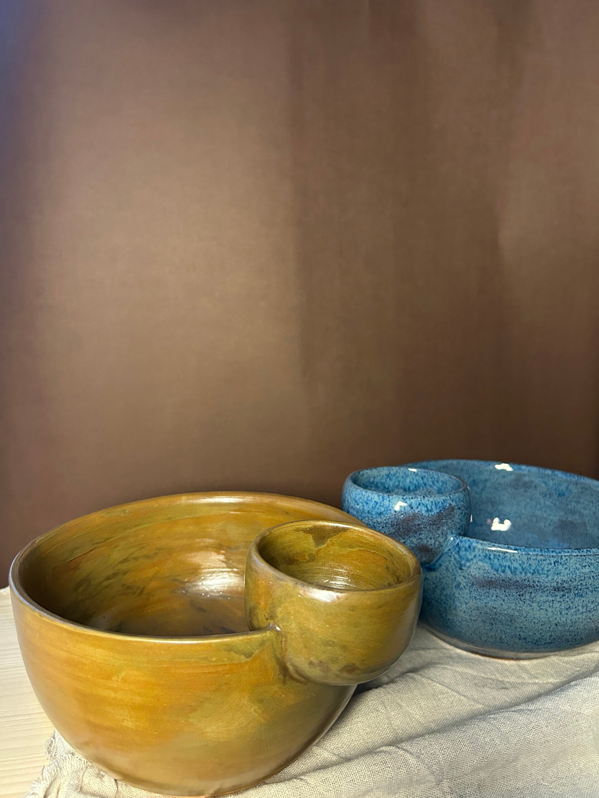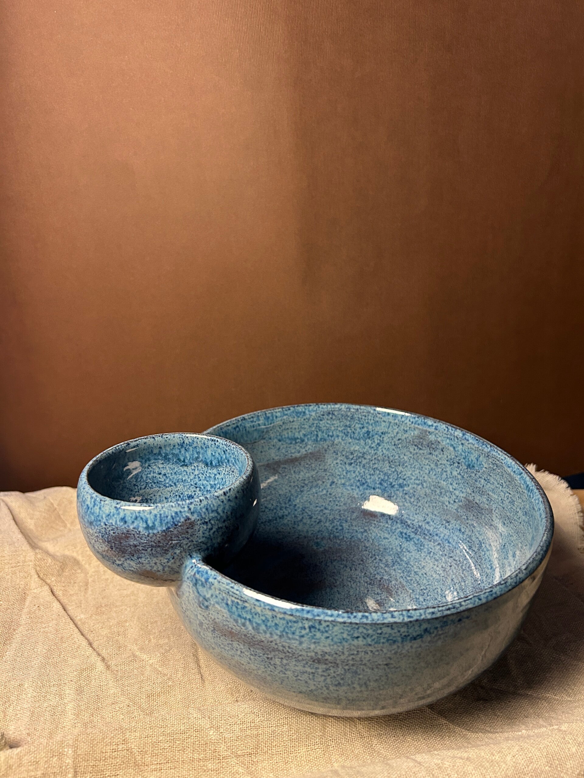 Tas qeramike për patatina me tas të vogël për salcë. Mund të krijohet edhe në ngjyrën që dëshironi ju.